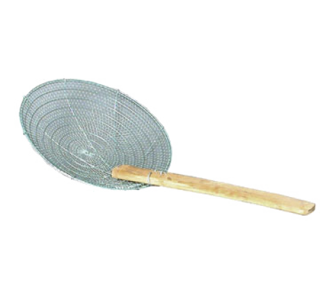 Skimmer, 10" dia, 13-1/2" bamboo handle, round, stainless steel, coarse mesh