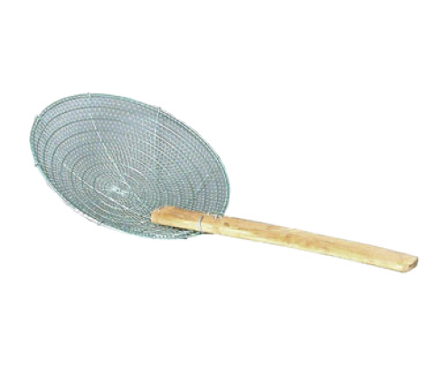 Skimmer, 12" diameter, 14-1/2" bamboo handle, round, galvanized, coarse mesh