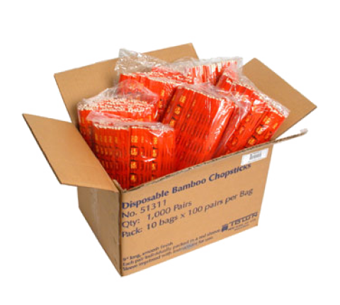 Chopsticks, bamboo, 9-3/4"L, individually wrapped in red sleeve (1,000 pairs per case (10 bags of 100 pairs per bag))
