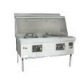 EcoDeck Wok Range, gas, (3) chamber, waterless (no constant flow of cooling water required), ball valve & push button activated water wash bar, Chinese swing faucet, L-shaped gas valve handle per burner, stainless steel 8" work/plating shelf, 5" front access integral with sink, 3-pipe rack, removable strainer basket, drip trays, legs with adjustable bullet feet, ETL, NSF