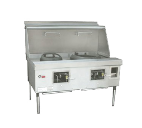York® Wok Range, Gas, (2) chambers, fiber ceramic insulation, water cooled top, Chinese swing faucets, knee "L" lever gas handle, stainless steel deck & sides, ETL, NSF