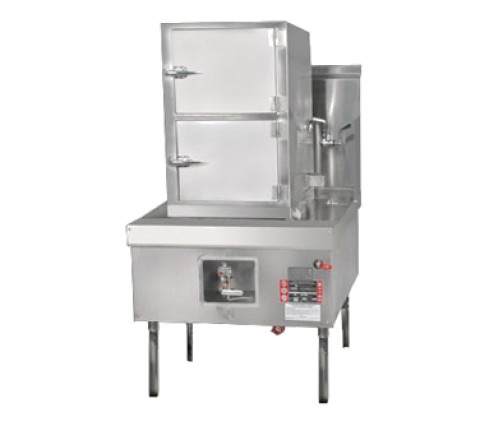 Steamer Range and Cabinet, Gas, (2) compartments, 34" wide x 41" deep base, (4) steaming pans, 32 tip jet burner, safety control, autofill, stainless steel construction, cETLus, NSF (contact factory for availability)