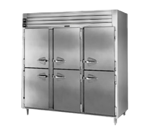 Spec-Line Refrigerator/Freezer Dual Temp Cabinet, reach-in, three-section, self-contained refrigeration, stainless steel exterior, aluminum interior, standard depth, (6) lockable narrow half-height doors with EZ-Clean gaskets, (3) adjustable wire shelves per section, interior LED lighting, microprocessor controls, 1/2 HP & 1/2 HP, cETLus, ETL-Sanitation