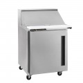 Centerline™ by Traulsen Mega Top Prep Table Refrigerator, reach-in, one-section, 27"W, accommodates (12) 1/6 size pans 4" deep pans (included), rated for use with 6" deep pans, stainless steel exterior, anodized aluminum interior, solid door hinged right (field reversible), full length removable cutting board, electronic control with LED display, (2) epoxy coated shelves per section, 4" casters, R450A refrigerant, 1/4HP, cETLus, ETL-Sanitation