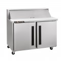 Centerline™ by Traulsen Mega Top Prep Table Refrigerator, reach-in, two-section, 60"W, accommodates (24) 1/6 size pans 4" deep pans (included), rated for use with 6" deep pans, stainless steel exterior, anodized aluminum interior, solid doors hinged right/right (field reversible), full length removable cutting board, electronic control with LED display, (2) epoxy coated shelves per section, 4" casters, R450A refrigerant, 1/4HP, cETLus, ETL-Sanitation