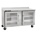 Centerline™ Compact Undercounter Refrigerator with Work Top, two-section, 60"W, 16.94 cu. ft. capacity, self-contained rear-mount refrigeration, (2) left hinged glass doors (field reversible), electronic control with LED display, (2) epoxy coated shelves per section, 4" backsplash, stainless steel exterior, anodized aluminum interior, (4) casters, R450A refrigerant, 1/4 HP, 115v/60/1-ph, 3.6 amps, NEMA 5-15P, cETLus, ETL-Sanitation, ENERGY STAR®