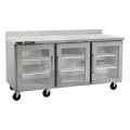 Centerline™ Compact Undercounter Refrigerator with Work Top, three-section, 72"W, 18.80 cu. ft. capacity, self-contained rear-mount refrigeration, (3) left hinged glass doors (field reversible), electronic control with LED display, (2) epoxy coated shelves per section, 4" backsplash, stainless steel exterior, anodized aluminum interior, (6) casters, R450A refrigerant, 1/4 HP, 115v/60/1-ph, 3.6 amps, NEMA 5-15P, cETLus, ETL-Sanitation, ENERGY STAR®