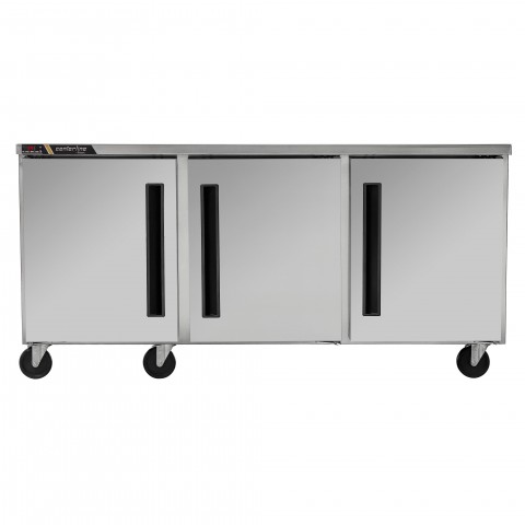 Centerline™ Compact Undercounter Refrigerator, reach-in, three-section, 72"W, 18.80 cu. ft. capacity, self-contained rear-mount refrigeration, (1) left hinged/ (2) right hinged solid doors (field reversible), electronic control with LED display, (2) epoxy coated shelves per section, stainless steel exterior, anodized aluminum interior, (6) casters, R450A refrigerant, 1/4 HP, 115v/60/1-ph, 3.6 amps, NEMA 5-15P, cETLus, ETL-Sanitation, ENERGY STAR®