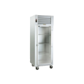 Spec-Line Refrigerator, (REMOTE MODEL), Pass-Thru Display, one-section, stainless steel exterior & interior, shallow depth, wide half-height glass doors on both sides with EZ-Clean Gaskets interior lights, (3) adjustable wire shelves per section, microprocessor controls, 6" adjustable stainless steel legs, cETLus, ETL-Sanitation
