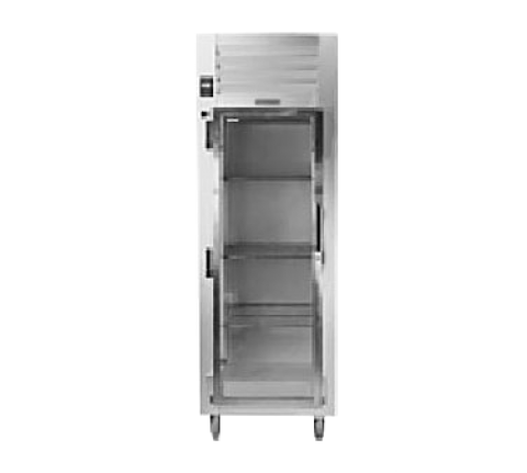 Spec-Line Refrigerator, Reach-in Display, one-section, 19.1 cu. ft., self-contained refrigeration, stainless steel exterior and interior, shallow depth, wide full-height glass doors, interior lights, (3) adjustable wire shelves per section, microprocessor controls, 6" adjustable stainless steel legs, 1/3 HP, cETLus, ETL-Sanitation