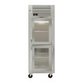 Spec-Line Refrigerator, Reach-in Display, one-section, 19.1 cu. ft., self-contained refrigeration, stainless steel exterior and interior, shallow depth, wide half-height glass doors, interior lights, (3) adjustable wire shelves per section, microprocessor controls, 6" adjustable stainless steel legs, 1/3 HP, cETLus, ETL-Sanitation