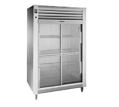 Spec-Line Refrigerator, Reach-in Display, two-section, 51.6 cu. ft., self-contained refrigeration, StayClear™ Condenser, stainless steel exterior and interior, standard depth, wide half-height sliding glass door or doors with EZ-Clean Gaskets, interior lighting, (3) adjustable wire shelves per section, microprocessor controls, 6" adjustable stainless steel legs, 3/4 HP, cETLus, ETL-Sanitation