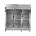 Spec-Line Refrigerator, Pass-thru Display, three-section, designed for remote refrigeration, stainless steel exterior and interior, standard depth, narrow half-height glass door or doors with EZ-Clean Gaskets, interior lights, (3) adjustable wire shelves per section, microprocessor controls, 6" adjustable stainless steel legs, cETLus, ETL-Sanitation