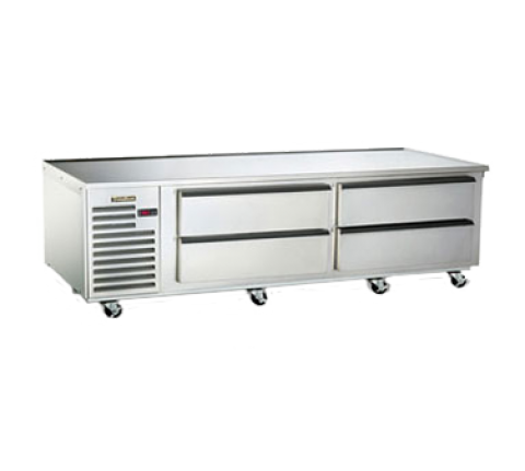 Spec-Line Refrigerated Equipment Stand, 84" long, (8) 12" x 20" x 6" deep pan capacity, side by side, (4) drawers, self-contained refrigeration, stainless steel marine top, stainless steel interior & exterior, 4" casters, microprocessor controls, 1/3 hp, cETLus, ETL-Sanitation
