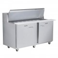Dealer's Choice Compact Prep Table Refrigerator with roll-top lid which serves as an overshelf, Reach-in, two-section, 60" wide, holds (24) 1/6 pans 4" deep (included), can accommodate up to 6" deep pans, full length white reversible cutting board, (2) stainless steel doors, hinged left & right, stainless steel top, sides & back, galvanized bottom, anodized aluminum interior with (4) shelves, rear mounted, self-contained refrigeration, R290 Hydrocarbon refrigerant, (6) 4" casters, 1/5 HP, cETLus, ETL-Sanitation