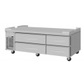 PRO Series Freezer Chef Base, two-section, 72-1/8"L x 33-1/2"D x 21-3/8"H, 12.14 cu. ft., (4) stainless steel drawers, digital temperature display, stainless steel flat top, front air intake, self-cleaning condenser, hot gas condensate system, side mount self-contained refrigeration, R290 Hydrocarbon refrigerant, 4/5 HP, 115v/60/1-ph, 9.5 amps, NEMA 5-15P, ETL-Sanitation, cETLus (contact sales for lead time)