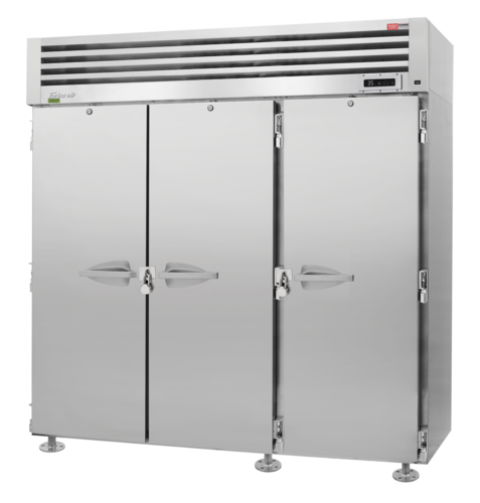 PRO Series Refrigerator for Correctional Facility, reach-in, three-section, 75.06 cu. ft. capacity, 77-3/4"W x 34-1/8"D x 78"H, top mount self-contained refrigeration, self-cleaning condenser device, digital temperature controller, self-diagnostic monitoring system, hot gas condensate system, automatic fan motor delays, (3) hinged solid stainless steel doors with locks, lifetime guaranteed heavy duty hinges & handles, LED interior lighting, (9) stainless steel wire shelves, stainless steel interior & exterior (galvanized top & bottom), R290 Hydrocarbon refrigerant, 1 HP, 115v/60/1-ph, 9.0 amps, NEMA 5-15P, cETLus, ETL-Sanitation, Made in USA (contact sales for lead time)