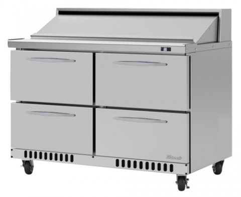 PRO Series Sandwich/Salad Prep Table, front breathing airflow, two-section, 11.1 cu. ft., 48-1/4"W x 30"D x 37"H, stainless steel top with 12-pan opening, stainless steel interior & exterior (galvanized steel bottom), (4) drawers, self-cleaning condenser, R290 Hydrocarbon refrigerant, 1/5 HP, 115v/60/1-ph, 6.5 amps, NEMA 5-15P, cETLus, ETL-Sanitation, Made in USA (contact sales for lead time)