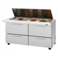 PRO Series Mega Top Sandwich/Salad Prep Table with Flat Lid, two-section, rear mount self-contained compressor, 19.0 cu. ft., 60-1/4"W x 34"D x 32-7/8"H, 24-pan top opening with lid, (4) drawers, 9-1/2" deep cutting board with side rail, digital temperature control & monitor system, cold bunker system, stainless steel interior & exterior (galvanized bottom), self-cleaning condenser, R290 Hydrocarbon refrigerant, 1/5 HP, 115v/60/1-ph, 8.9 amps, NEMA 5-15P, cETLus, ETL-Sanitation, Made in USA (contact sales for lead time)