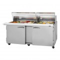 PRO Series Mega Top Sandwich/Salad Prep Table with Clear Lid, two-section, rear mount self-contained compressor, 23.0 cu. ft., 72-5/8"W x 34"D x 39-5/8"H, 30-pan top opening with (2) hoods, (2) solid hinged swing doors with locks, aluminum door liner, (2) stainless steel shelves, 9-1/2" deep cutting board with side rail, digital temperature control & monitor system, cold bunker system, stainless steel interior & exterior (galvanized bottom), LED interior lighting & fan control, self-cleaning condenser, R290 Hydrocarbon refrigerant, 3/8 HP, 115v/60/1-ph, 9.9 amps, NEMA 5-15P, cETLus, ETL-Sanitation, Made in USA (contact sales for lead time)