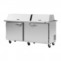 PRO Series Mega Top Sandwich/Salad Prep Table with Dual Sided Lids, two-section, rear mount compressor, self-contained system, 23.0 cu. ft., 72-5/8"W x 46-1/2"D x 40-5/8"H, 30-pan top opening with (2) dual sided lids & (2) hoods, (2) solid hinged swing doors with locks, aluminum door liner, (2) stainless steel shelves, 9-1/2" deep cutting board with side rail, digital temperature control & monitor system, cold bunker system, stainless steel interior & exterior (galvanized bottom), LED interior lighting & fan control, self-cleaning condenser, R290 Hydrocarbon refrigerant, 3/8 HP, 115v/60/1-ph, 9.9 amps, NEMA 5-15P, cETLus, ETL-Sanitation, Made in USA (contac sales for lead time)