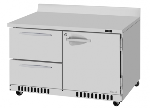 PRO Series Worktop Refrigerator, Front Breathing airflow, two-section, 9.8 cu.ft. capacity, 48-1/4"W x 30"D x 34-1/8"H, self-contained refrigeration with self-cleaning condenser, (1) solid door, (2) Drawers, (1) shelf, LED interior lighting, digital temperature control & monitor system, stainless steel interior & exterior (galvanized bottom, R290 Hydrocarbon refrigerant, 1/6 HP, 115v/60/1-ph, 6.5 amps, cord with NEMA 5-15P, cETLus, ETL-Sanitation, Made in USA (contact sales for lead time)