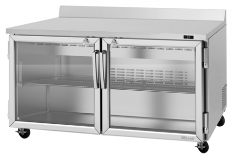 PRO Series Worktop Refrigerator, two-section, 17.2 cu.ft., 60-1/4"W x 30-3/4"D x 38-7/8"H, self-cleaning condenser, (2) glass doors with lock, aluminum door liner, (2) stainless steel wire shelves, LED interior lighting, digital temperature control & monitor system, stainless steel interior & exterior (galvanized bottom), R290 Hydrocarbon refrigerant, 1/6 HP, 115v/60/1-ph, 8.9 amps, cord with NEMA 5-15P, cETLus, ETL-Sanitation, Made in USA (contact sales for lead time)