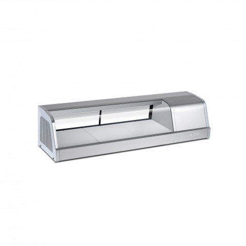 Refrigerated Sushi Case, 48-1/4"W x 14-1/8"D x 11-1/2"H, 1.3 cu. ft. capacity, self-contained compressor located on the left from the customer side view, top glass angles down, 304 stainless steel exterior body & food plates, (2) tempered glass rear sliding doors with handles, (3) bottom shelves, 1" drain, ambient temperature range 50-80°F, saturation 39°F, R290 Hydrocarbon refrigerant, 1/6 HP, 115v/60/1-ph, 4.6 amps, NEMA 5-15P, cCSAus, CSA-Sanitation