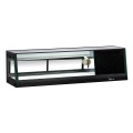 Refrigerated Sushi Case, 47-1/4"W x 14-1/2"D x 13-1/2"H, 1.5 cu. ft. capacity, self-contained refrigeration located on the right from the customers view, straight front glass, (2) tempered glass rear sliding doors with handles, (3) bottom shelves, LED interior lighting, digital temperature display & control, ambient temperature range 50-80°F, saturation 39°F, black exterior color, R290 Hydrocarbon refrigerant, 115v/60/1-ph, 1/6 HP, 3.0 amps, cord with NEMA 5-15P, CSA-Sanitation, cCSAus