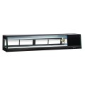 Refrigerated Sushi Case, 70-7/8"W x 14-1/2"D x 13-1/2"H, 2.3 cu. ft. capacity, self-contained refrigeration located on the left from the customers view, specify refrigeration side, straight front glass, (4) tempered glass rear sliding doors with handles, (5) bottom shelves, LED interior lighting, digital temperature display & control, ambient temperature range 50-80°F, saturation 39°F, black exterior color, R290 Hydrocarbon refrigerant, 115v/60/1-ph, 1/6 HP, 3.0 amps, cord with NEMA 5-15P, CSA-Sanitation, cCSAus