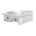 Radiance Griddle, countertop, gas, 24"W x 30"D, stainless steel front & side, built-in stainless steel splash guard, 3/4" thick highly polished steel griddle plate, (2) burner, aluminized U shaped burners & manual controls for every 12", individual heat resistant on-off knob, 3" wide front grease trough, removable grease pan, bullnose stainless steel front extension, 2" stainless steel standard legs, regulator included, total 44,000 BTU, CSA, CSA-Sanitation