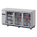 Super Deluxe Narrow Back Bar Cooler, three-section, (3) glass doors, 73-1/8"W x 24-1/2"D x 35-3/8"H, 20.62 cu.ft., self-contained, side mount, Easy-to-clean Air-filter equipped, (6) stainless steel wire shelves, LED interior light, stainless steel exterior and interior, R290 Hydrocarbon refrigerant, 1/3 HP, 115v/60/1-ph, 2.9 amps, cord with NEMA 5-15P, cETLus, ETL-Sanitation (contact sales for lead time)