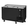 Super Deluxe Bottle Cooler, 50"W x 26-1/2"D x 33-1/4"H, 13.5 cu.ft., self-cleaning condenser equipped, self-contained, (3) PE coated adjustable dividers, built-on removable bottle cap opener & catcher, (2) sliding lids, stainless steel countertop & lid, black laminated exterior, stainless steel inside walls & floor, galvanized steel interior top, side mount compressor, front breathing, (5) casters standard, R600a Hydrocarbon refrigerant, 1/5 HP, 115v/60/1-ph, 1.7 amps, cord with NEMA 5-15P, cETLus, ETL-Sanitation