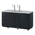 Super Deluxe Beer Dispenser, 69"W x 27-1/4"D x 37-1/8"H, self-cleaning condenser equipped, (2) swing doors with locks, stainless steel countertop & black exterior, stainless steel inside walls & floor, galvanized steel interior top, (3) 1/2 barrel capacity, (2) 3" dia. stainless steel insulated beer columns with double faucet, door locks, recessed handles, side mount, front air intake, R-600a Hydrocarbon refrigerant, 1/3 HP, 115v/60/1-ph, 2.5 amps, cord with NEMA 5-15P, ETL-Sanitation, cETLus, ENERGY STAR®