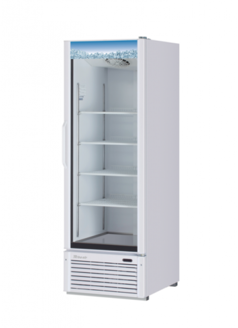 Glass Door Refrigerator, one-section, 26-3/8"W x 32"D x 78-1/8"H, 18.9 cu.ft., hydrocarbon refrigerants (R-600a), energy conserving fan control, double pane glass doors with low-e glass, high-density polyurethane insulation, LED interior lighting, adjustable PE coated wire shelves, 1/4 HP, 115v/60/1-ph, 2.8 amps, NEMA 5-15P, cETLus, ETL-Sanitation (contact sales for lead time)