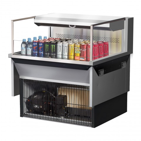 Drop-In Horizontal Open Display Case, low profile, 4.6 cu. ft. capacity, 35-7/8"W x 33"D x 37-3/4"H, self-contained refrigeration with self-cleaning condenser, deck only, tempered glass front shield & side walls, solar digital thermometer, digital electronic thermostat with defrost control, LED interior lighting, stainless steel interior & exterior, back wall & deck pan, front air intake & rear air discharge, includes night cover, R290 Hydrocarbon refrigerant, (2) 3/4 HP, 115v/60/1-ph, 11.3 amp, cord with NEMA 5-20P, cETLus, ETL-Sanitation (Contact sales for lead time)