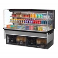 Drop-In Horizontal Open Display Case, low profile, 23.4 cu. ft. capacity, 71-7/8"W x 33"D x 52-1/2"H, self-contained refrigeration with self-cleaning condenser, (2) tiers with (4) glass shelves + deck, tempered glass front shield & side walls, solar digital thermometer, digital electronic thermostat with defrost control, LED interior lighting, stainless steel interior, back wall & deck pan, specify exterior color, front air intake & rear air discharge, includes night cover, R290 Hydrocarbon refrigerant, (4) 3/4 HP, 220v/60/1ph, 13.0 amps, cord with NEMA 6-20P, cETLus, ETL-Sanitation (Contact sales for lead time)