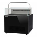 Open Display Sandwich & Cheese Merchandiser, with glass sneeze guard, 40-1/4"W x 35-3/8"D x 40-1/4"H, 1.83 cu. ft., capacity, self-contained refrigeration with self-cleaning condenser, digital temperature controller, single pane tempered glass, bottom lit LED interior lighting, top shelf with white glass with a mirror finish and stainless steel frame, stainless steel deck & airflow grille, specify exterior color, 3" swivel casters (2 with brakes), R290 Hydrocarbon refrigerant, 1/3 HP, 115v/60/1ph, 8.0 amps, cord with NEMA 5-15P, cETLus, ETL-Sanitation