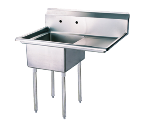 Sink, 1-compartment, with 18" right-hand drainboard, 18" front-to-back x 18" wide sink compartment, 11" deep bowl, 11"H backsplash, 18/304 stainless steel bowl, galvanized gussets & tubular legs with adjustable ABS feet, NSF
