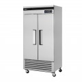 Super Deluxe Refrigerator, reach-in, two-section, 29.19 cu. ft., self-contained, stainless steel front & side, galvanized back & top of the cabinet, stainless steel interior, (2) hinged solid door with recessed handle, LED interior lighting, (6) adjustable stainless steel wire shelves, exterior LED digital thermometer, door-open alarm beeps, self-diagnostic monitoring system, Turbo cooling, automatic fan motor delays, door pressure release device, self-cleaning condenser equipped, door locks, bottom mount compressor, R600a Hydrocarbon refrigerant, 1/5 HP, 115v/60/1-ph, 2.1 amps, NEMA 5-15P, ETL-Sanitation, cETLus, ENERGY STAR®