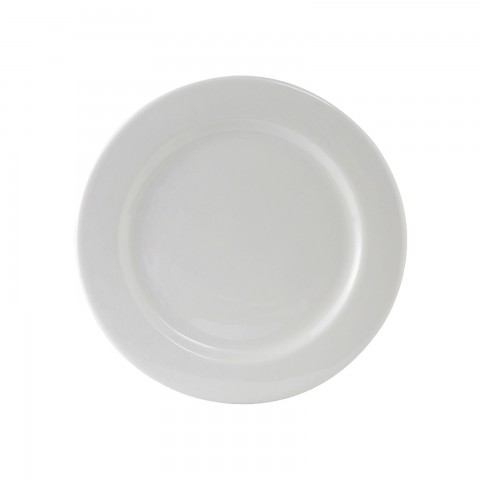 Plate, 10-1/2" dia., round, wide rim, rolled edge, microwave & dishwasher safe, oven proof, fully vitrified, lead-free, Alaska, Porcelain White
