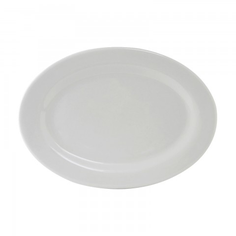 Platter, 13-3/4" x 10", oval, wide rim, rolled edge, microwave & dishwasher safe, oven proof, fully vitrified, lead-free, Alaska, Porcelain White
