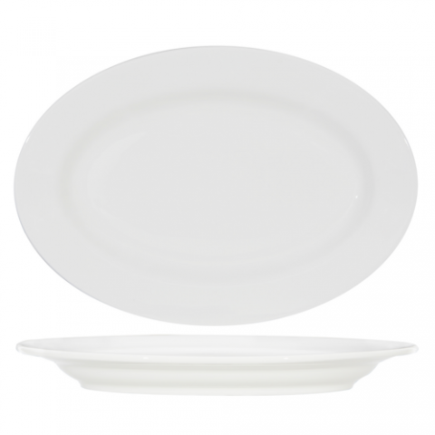 Platter, 15-3/4" x 11", oval, wide rim, microwave & dishwasher safe, oven proof, fully vitrified, lead-free, ceramic, AlumaTux®©, Modena, Pearl White