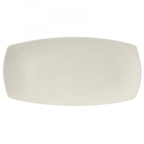 Plate, 16" L x 8" W x 1"H, rectangular, rolled edge, tapered ends, microwave & dishwasher safe, oven proof, fully vitrified, lead-free, ceramic, AlumaTux®©, Napa, Pearl White