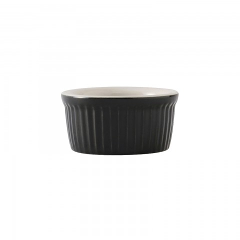 Ramekin, 3-1/2 oz., 3-1/4" dia. x 1-5/8"H, round, fluted, microwave & dishwasher safe, oven proof, fully vitrified, lead-free, ceramic, DuraTux®©, two-tone, Black/Eggshell