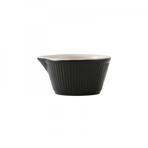 Ramekin, 4 oz., 3-1/2"L x 3-1/4"D x 1-3/4"H, fluted with pour spout, microwave & dishwasher safe, oven proof, fully vitrified, lead-free, ceramic, DuraTux®©, two-tone, Black/Eggshell