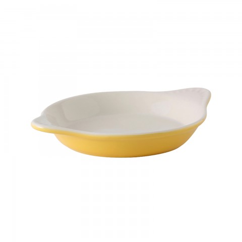Shirred Egg, 9 oz., 7-3/4" x 6-1/8" x 1" H, round, microwave & dishwasher safe, oven proof, fully vitrified, lead-free, ceramic, DuraTux®©, Saffron/Eggshell