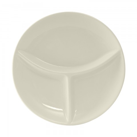 Plate, 9" dia., round, coupe, 3-compartment, microwave & dishwasher safe, oven proof, fully vitrified, lead-free, ceramic, TuxCare®©, Healthcare, American White/Eggshell