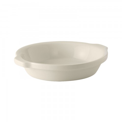 Au Gratin Dish, 20 oz., 8-1/8" x 7-3/8" x 1-5/8" H, round, microwave & dishwasher safe, oven proof, fully vitrified, lead-free, ceramic, DuraTux®©, American White/Eggshell