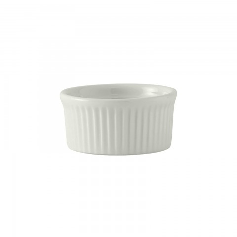 Ramekin, 5 oz., 3-1/2" dia. x 1-3/4"H, round, fluted, microwave & dishwasher safe, oven proof, fully vitrified, lead-free, DuraTux®©, Porcelain White